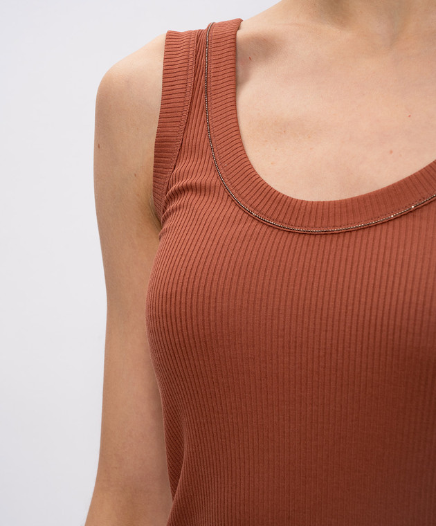 Коричневий топ в рубчик з ланцюжком моніль