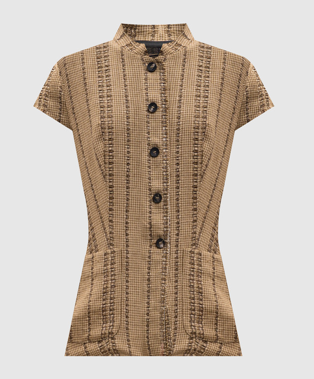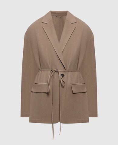 Коричневий жакет з льону з короткими рукавами