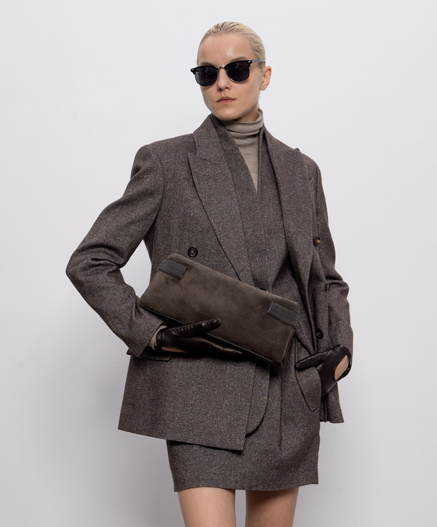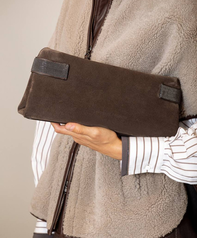 Коричневий замшевий клатч Pouch Essence з ланцюжком моніль