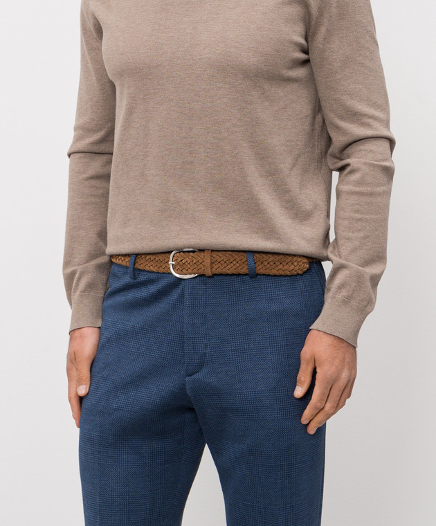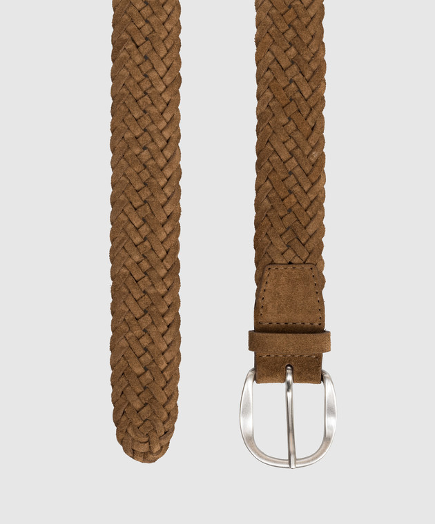 Коричневий замшевий плетений ремінь з логотипом