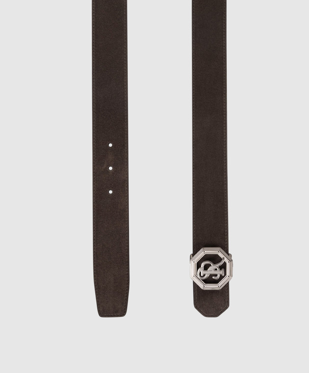 Коричневий замшевий ремінь з монограмою логотипа