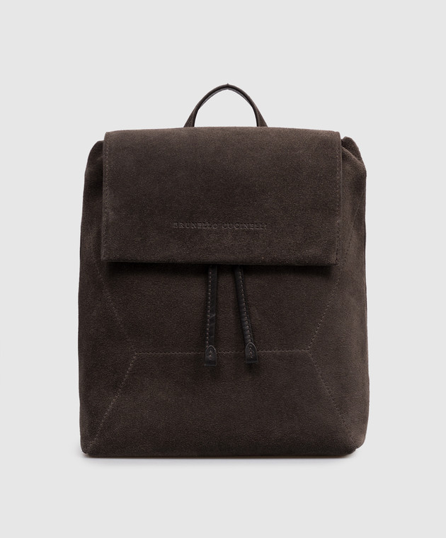 Коричневий замшевий рюкзак з тисненням логотипа