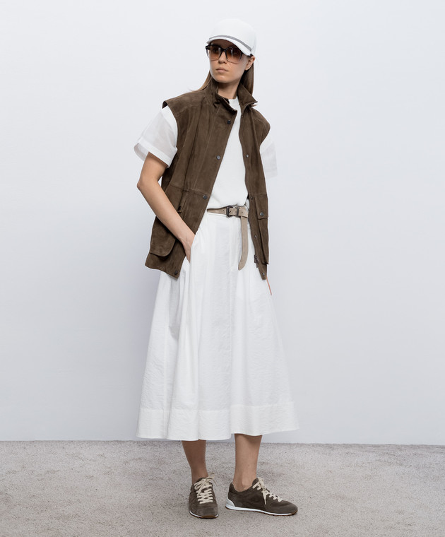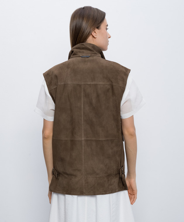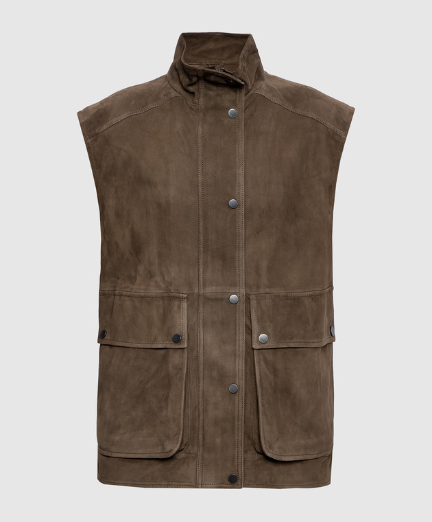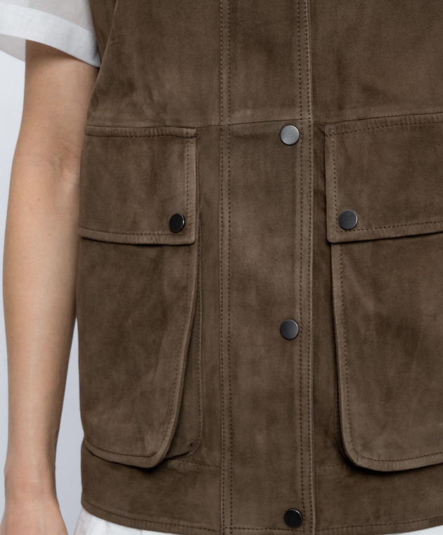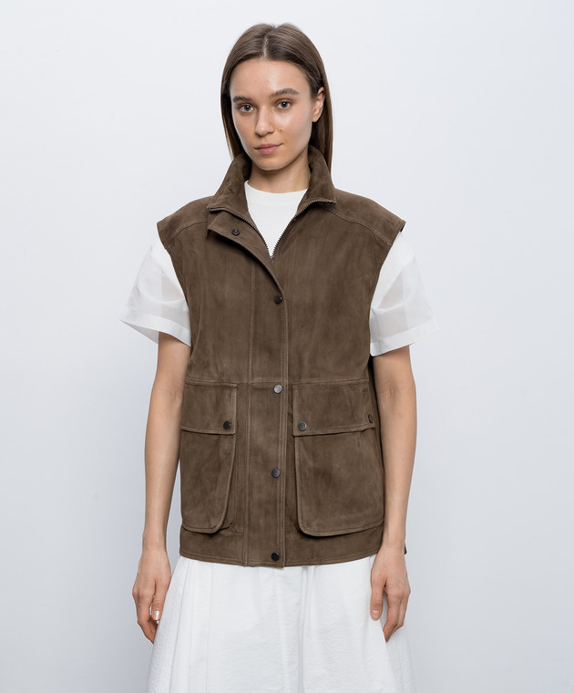 Коричневий замшевий жилет з ланцюжком моніль