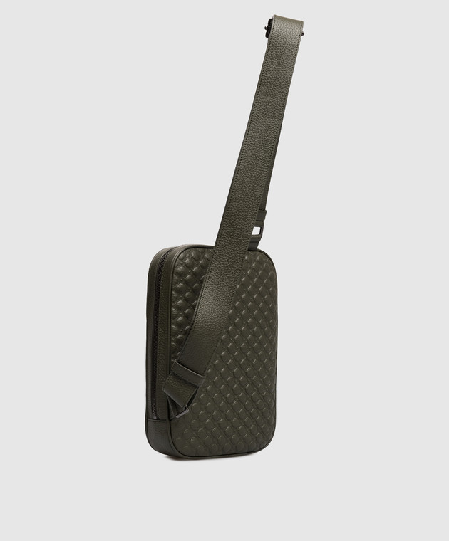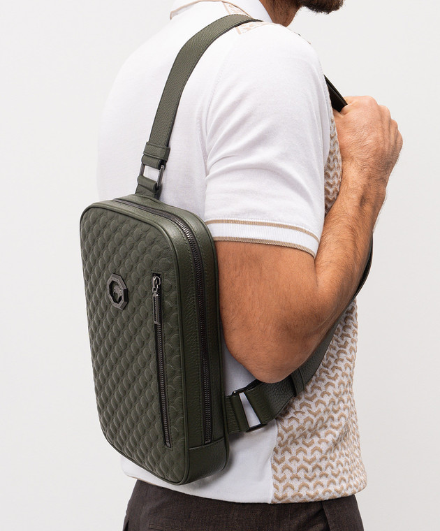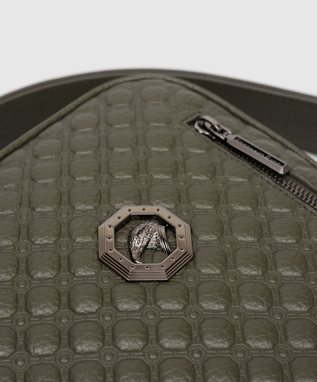 Шкіряна сумка-слінг кольору хакі з емблемою з рутенієвим покриттям