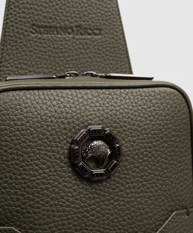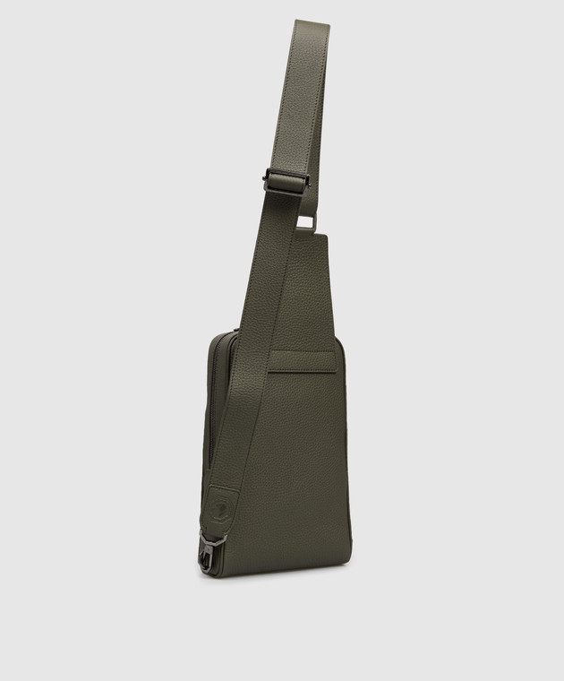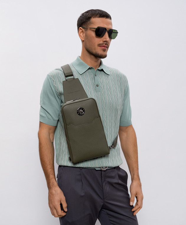 Шкіряна сумка-слінг кольору хакі з емблемою з рутинієвим покриттям