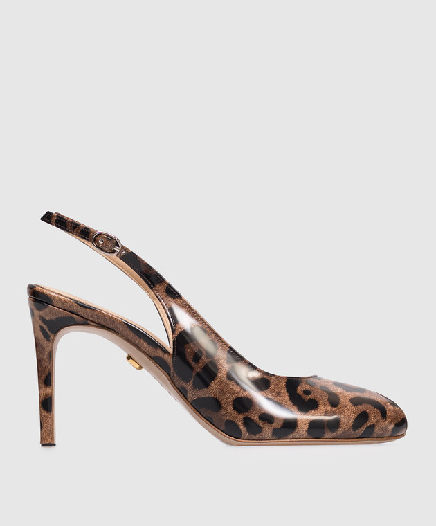Шкіряні лаковані слінгбеки в леопардовий принт