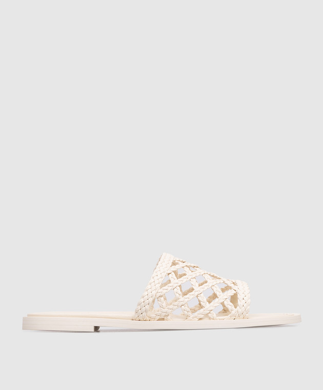 Шкіряні шльопанці кольору айворі з плетінням