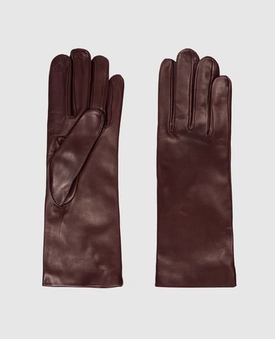 Шкіряні подовжені рукавички коричневого кольору
