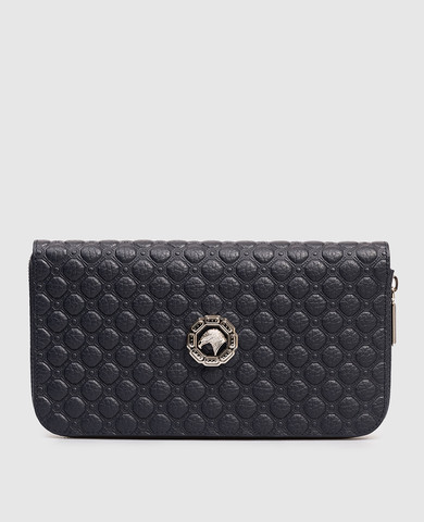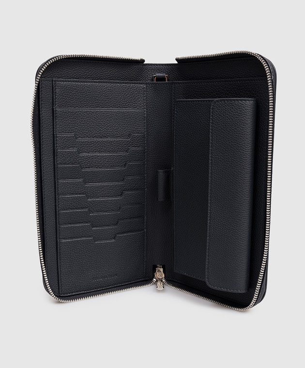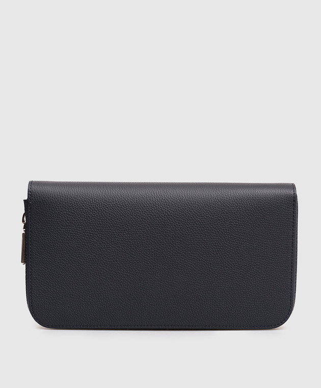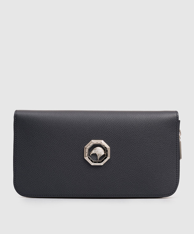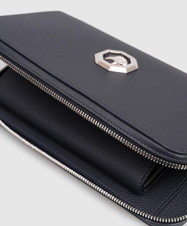 Шкіряний клатч синього кольору з емблемою