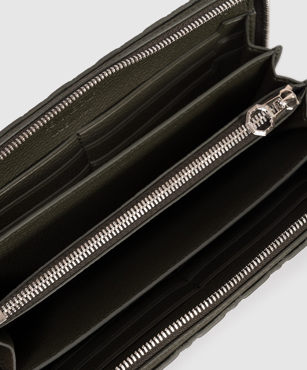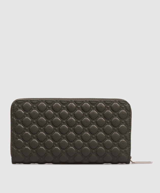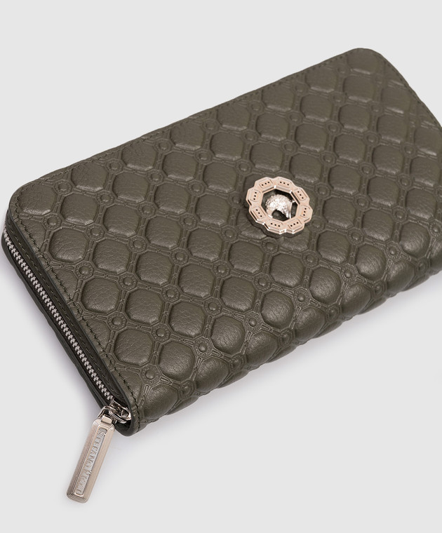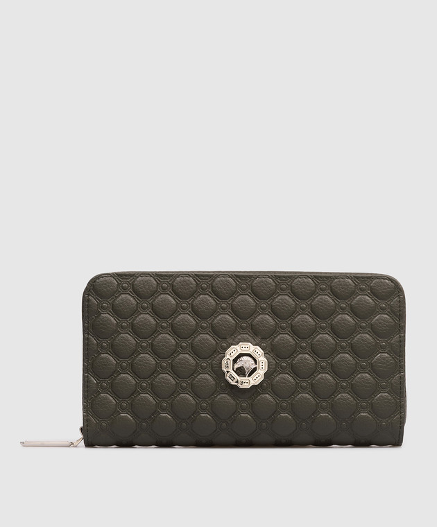 Шкіряний гаманець кольору хакі з фактурною емблемою
