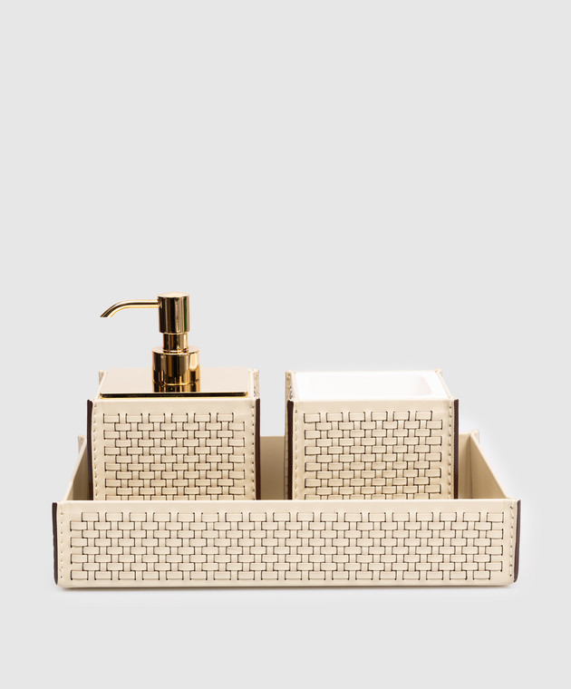 Шкіряний набір для ванної кімнати HILTON з дозатора, склянки та підставки