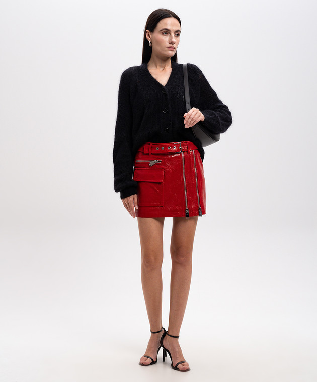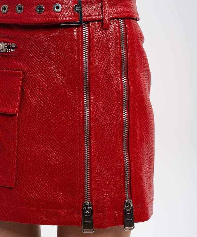 Червона шкіряна спідниця міні з тисненням під шкіру рептилії