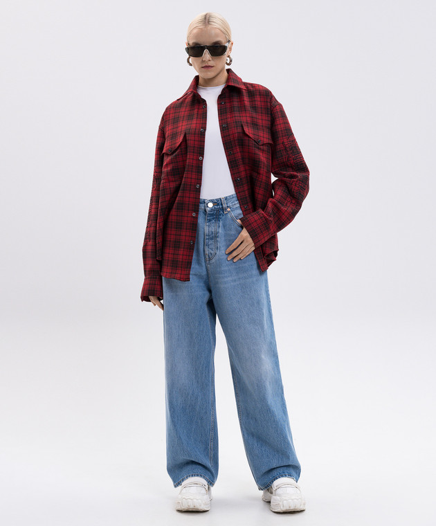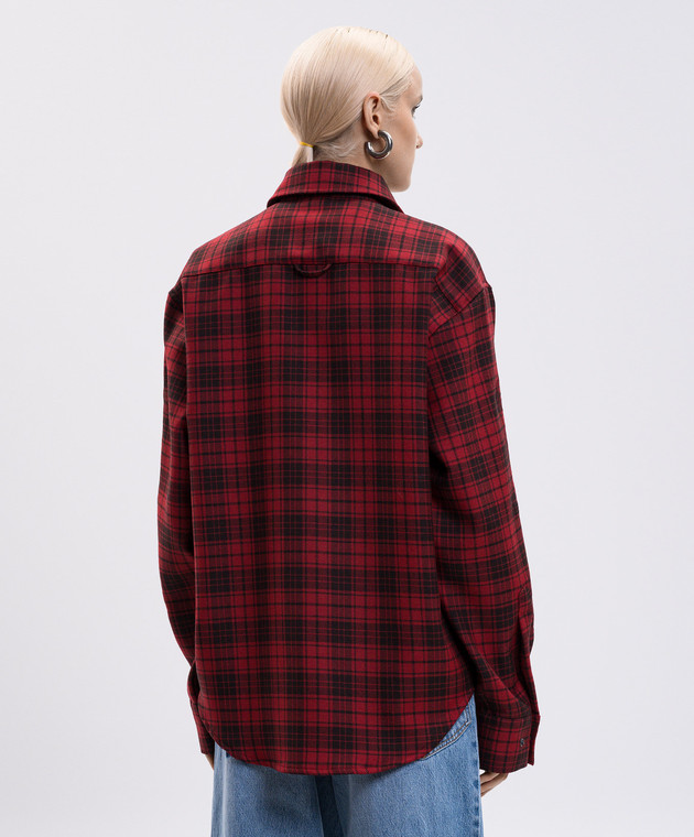 Червона сорочка з вовни в клітинку з вишивкою логотипа