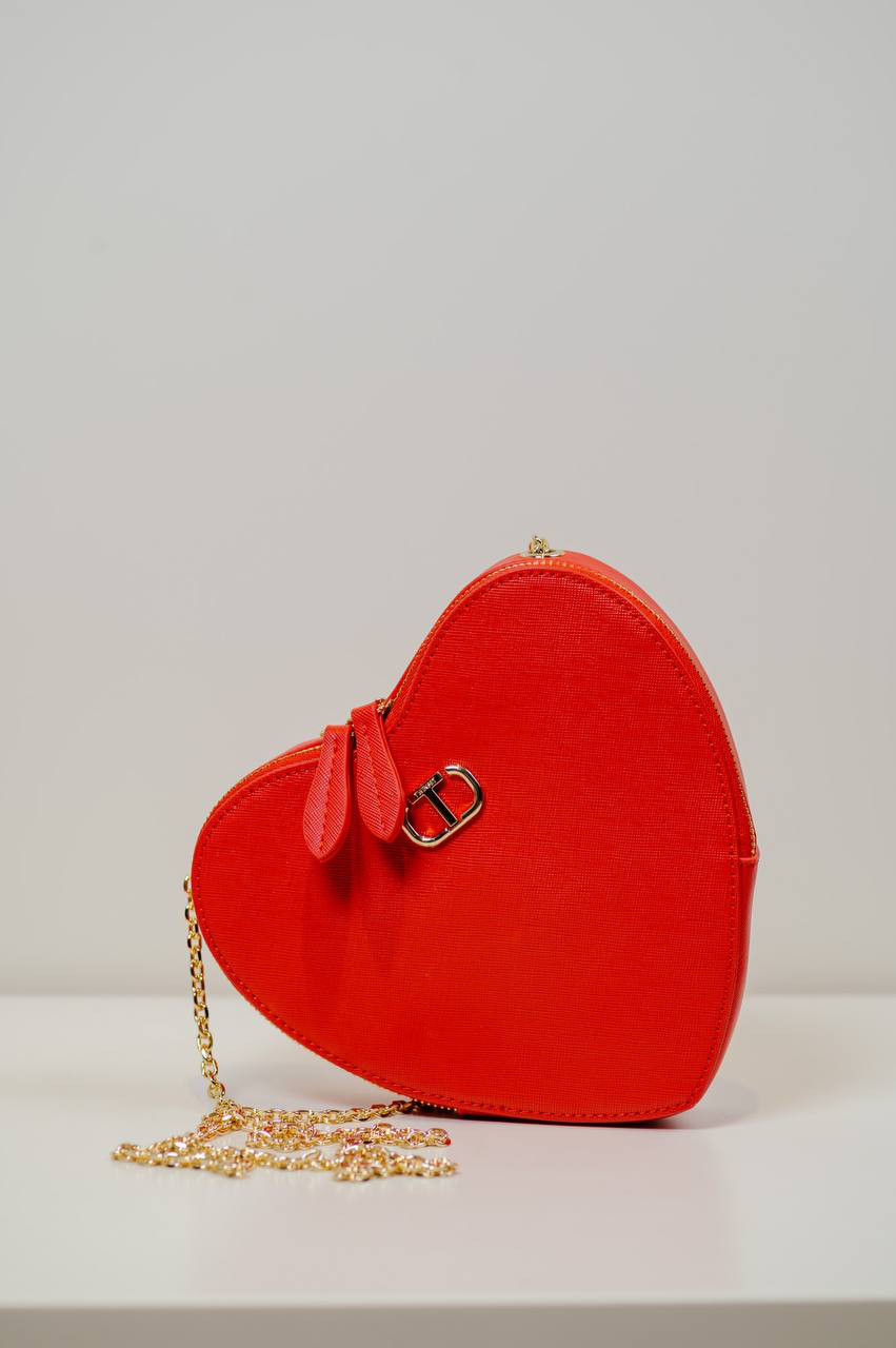 Червона сумка крос-боді Mon Amour у вигляді серця з логотипом