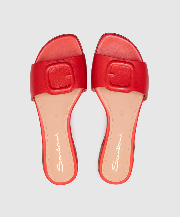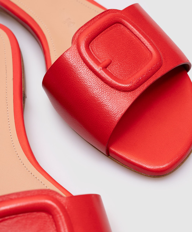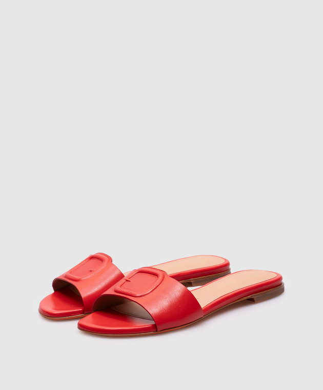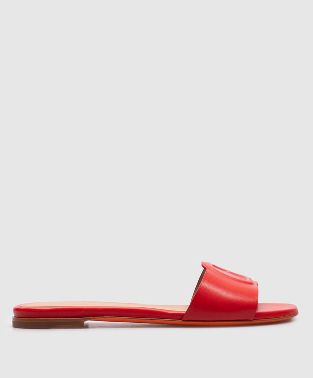 Червоні шкіряні шльопанці з логотипом