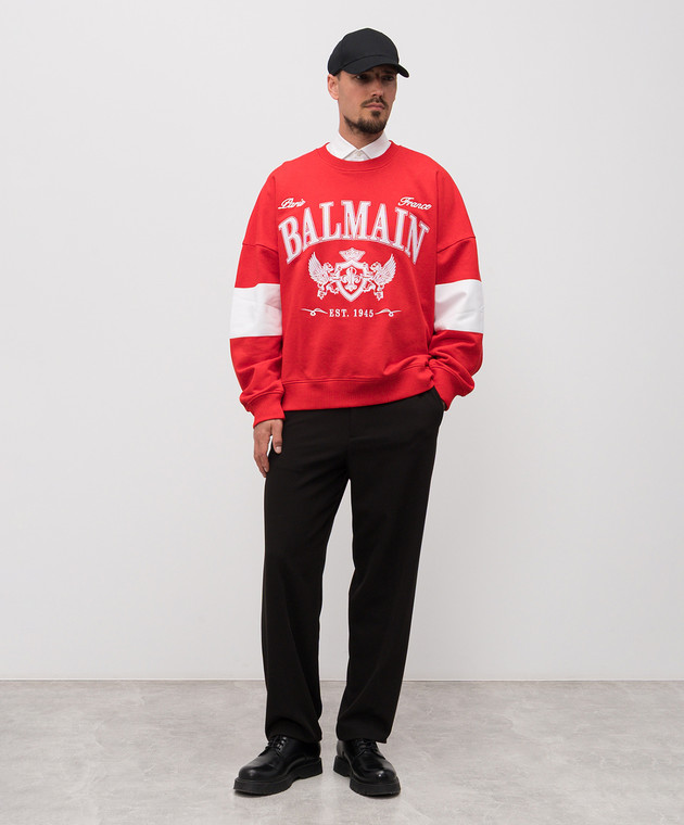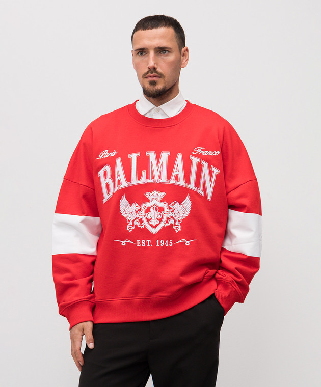 Червоний світшот з вишивкою Balmain College