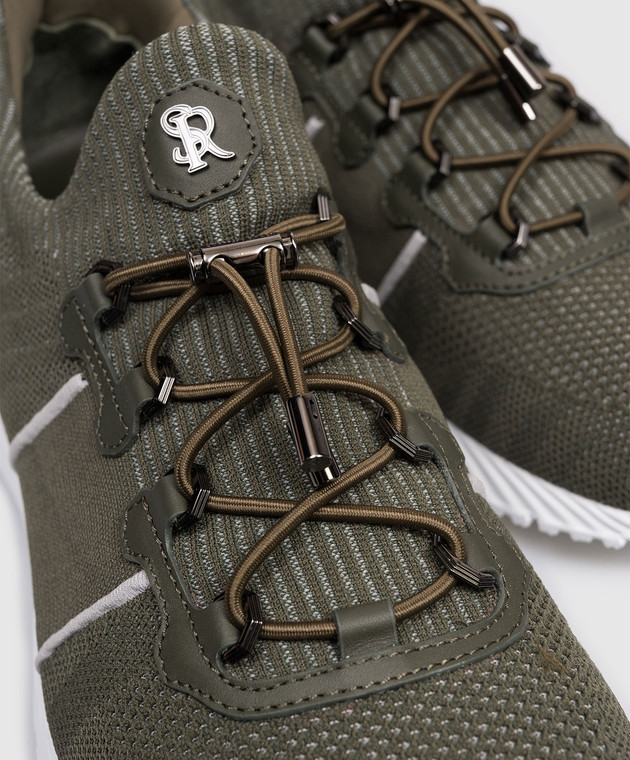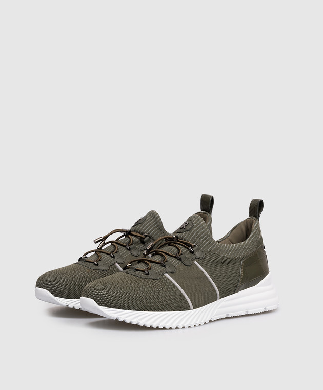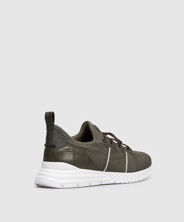 Кросівки кольору хакі зі шкірою крокодила