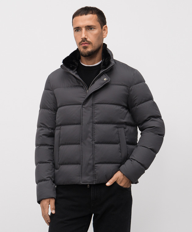 Сіра пухова куртка з логотипом