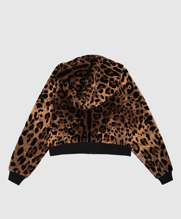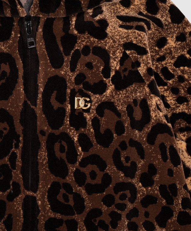 Дитяча коричнева велюрова спортивна куртка в анімалістичний принт