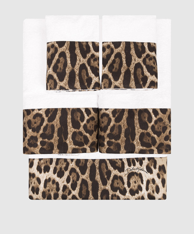 Набір білих махрових рушників з леопардовими вставками 5 шт