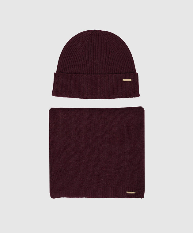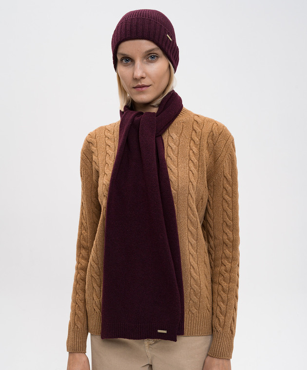Набір з бордової шапки і шарфа з вовною