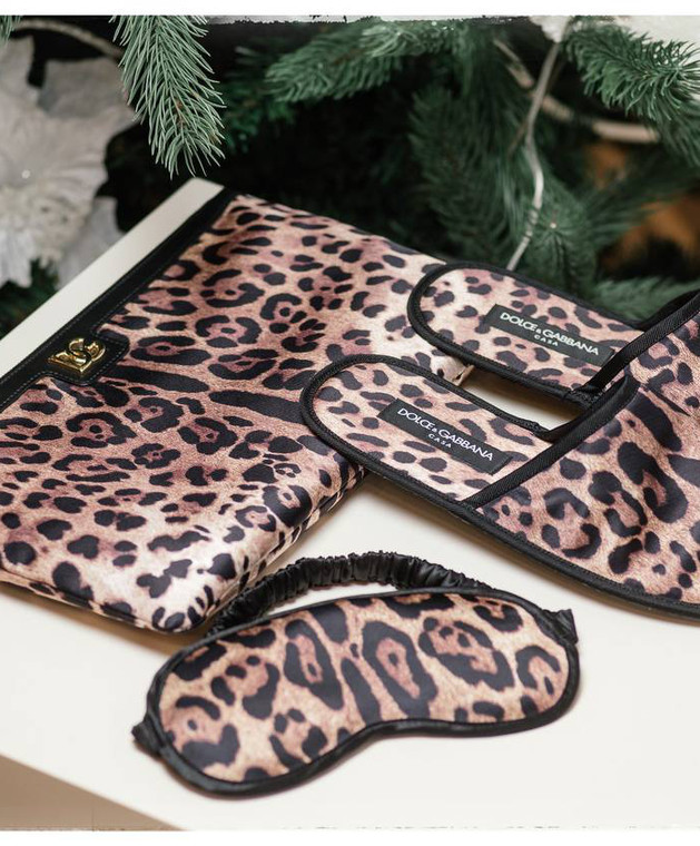Набір з клатчу, капців та маски для сну в анімалістичний принт з логотипом DG