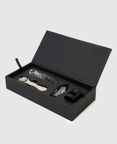 • Додатково в наборі чотири вироби - штопор Crystal Soft Machine, відкривачка для корків ігристих вин, вакуумний насос для вина Gard'Vin On/off, дві пробки для вакуумного насоса, пробка для ігристих вин