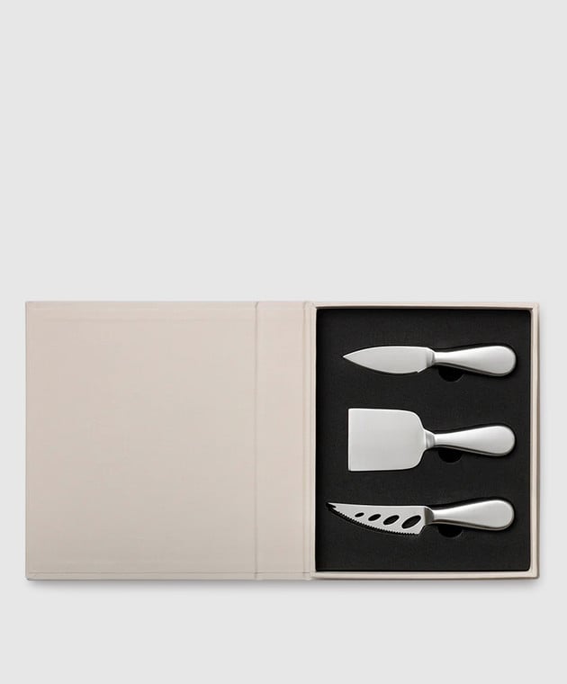 • Додатково: в наборі три вироби - ніж із зубцями (для м’яких та напівм’яких сирів, таких як брі або камамбер) /; ніж-зубик (ідеально підходить для розсипчастих сирів, таких як блакитний сир або фета) / ніж у формі серця (достатньо універсальний для твердих сирів, таких як пармезан)