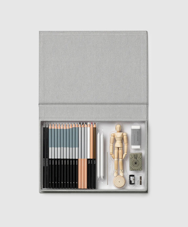• Додатково в наборі дерев'яний манекен з подіумом, дві точилки, дві гумки, дві крейди, три пастельні олівці, три вугільні олівці, два графітові олівці та десять олівців для малювання