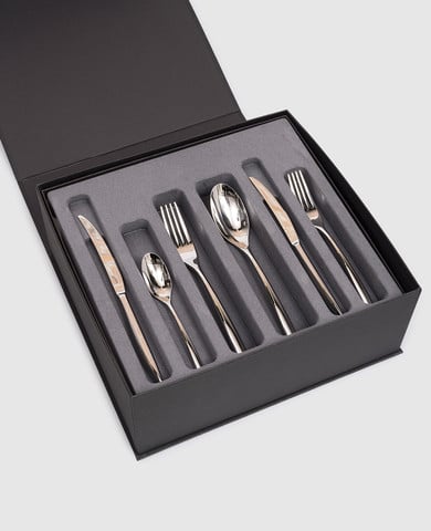 • Додатково: у наборі 24 вироби (6 - ложок для супу, 6 - виделок для обіду, 6 - ножів для обіду та 6 - чайних ложок)
