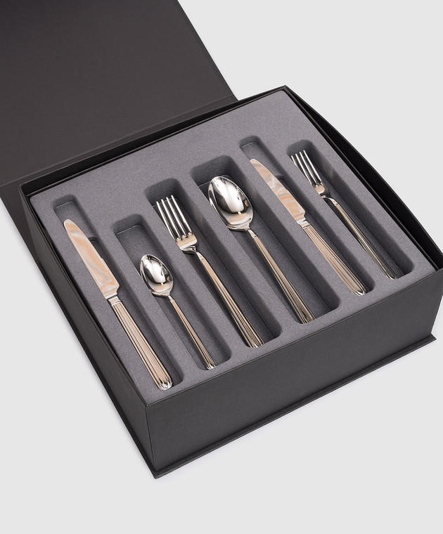 • Додатково: у наборі 75 виробів (12 - ложок для супу, 12 - виделок для обіду, 12 - ножів для обіду, 12 - чайних ложок, 12 - виделок (18 см), 12 - ножів (20 см), 1 - велика ложка (26 см), 1 - велика виделка (26 см), 1 - ополоник)