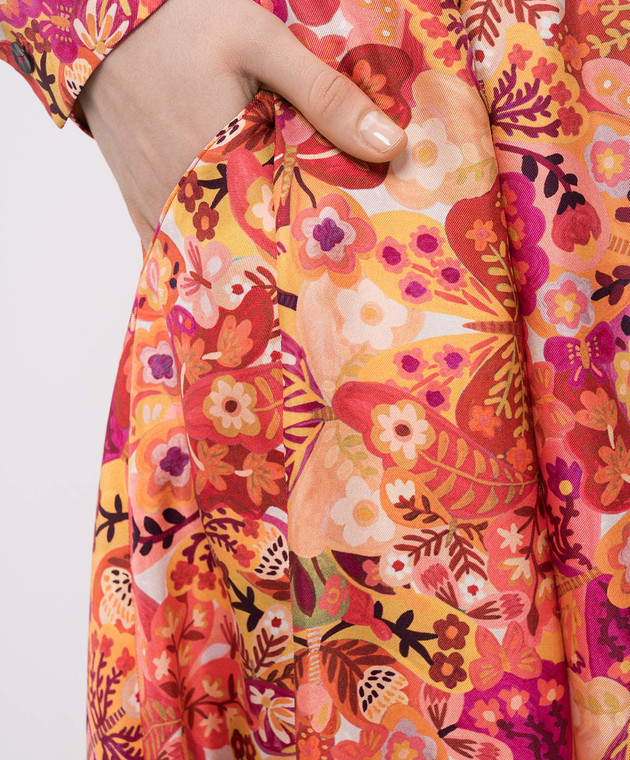 Помаранчева спідниця Piya із шовку в квітковий принт