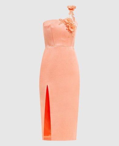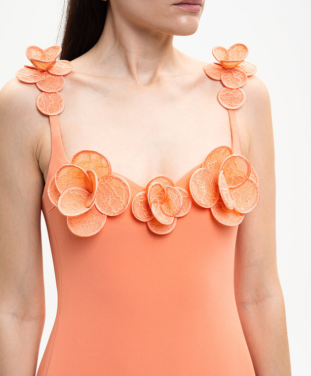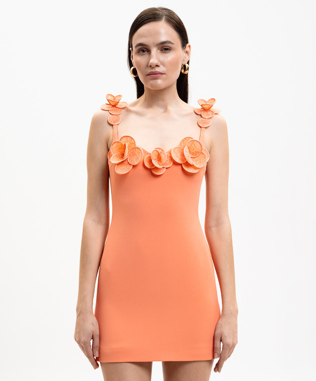 Помаранчева сукня з квітковою аплікацією
