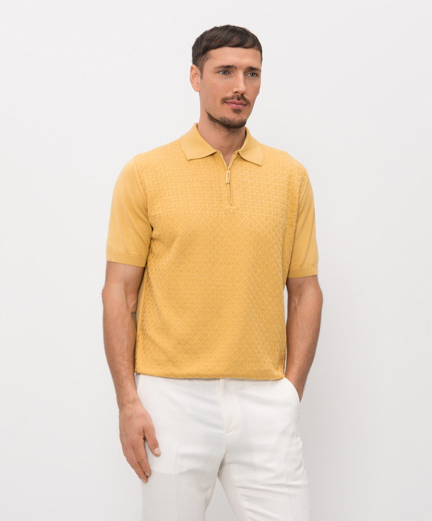 Помаранчеве поло в тканий візерунок