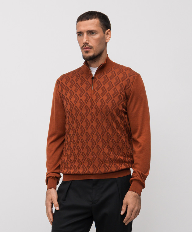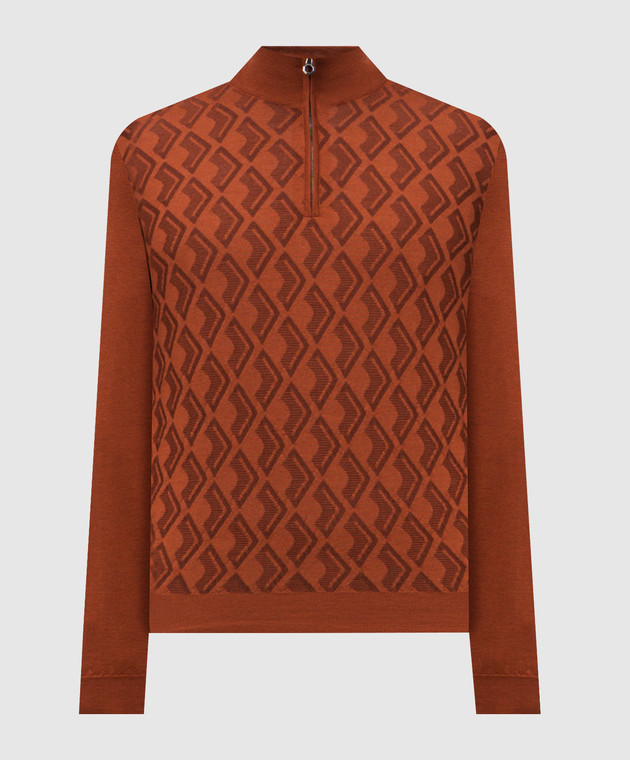 Помаранчевий джемпер з вовни, шовку і кашеміру у візерунок
