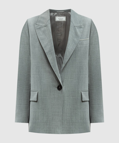 Бежевий жакет з вовни з ланцюжком моніль