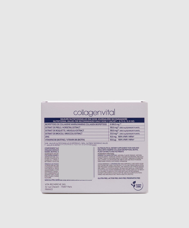 • Додатково активні компоненти - біопептиди морського колагену, екстракт хвощу польового, екстракт арагули, екстракт брокколі, цинк, вітамін В8