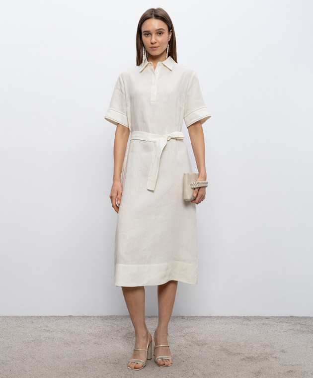 Сукня кольору айворі з льону з ланцюжком моніль