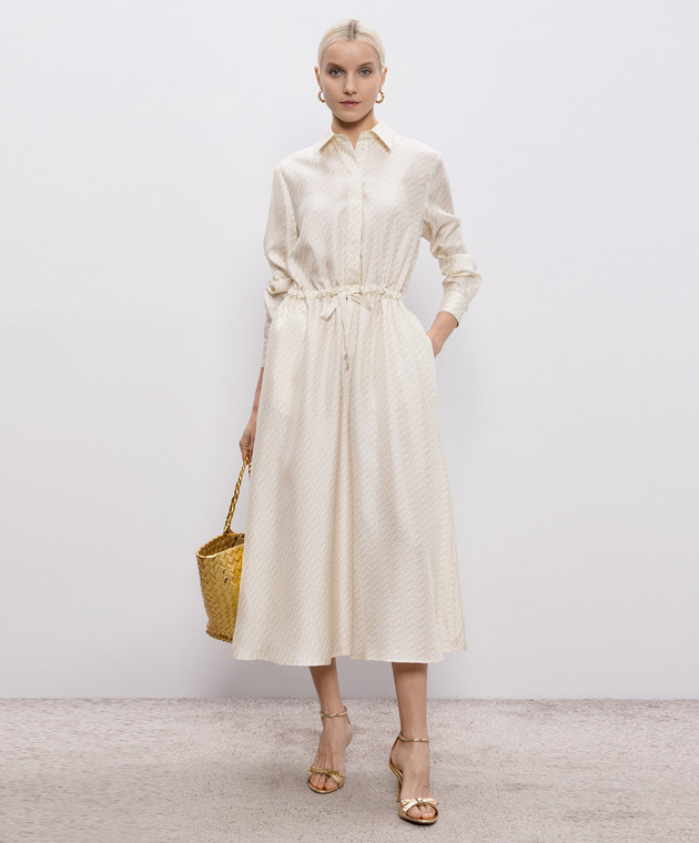 Сукня кольору айворі із шовку в брендовий принт
