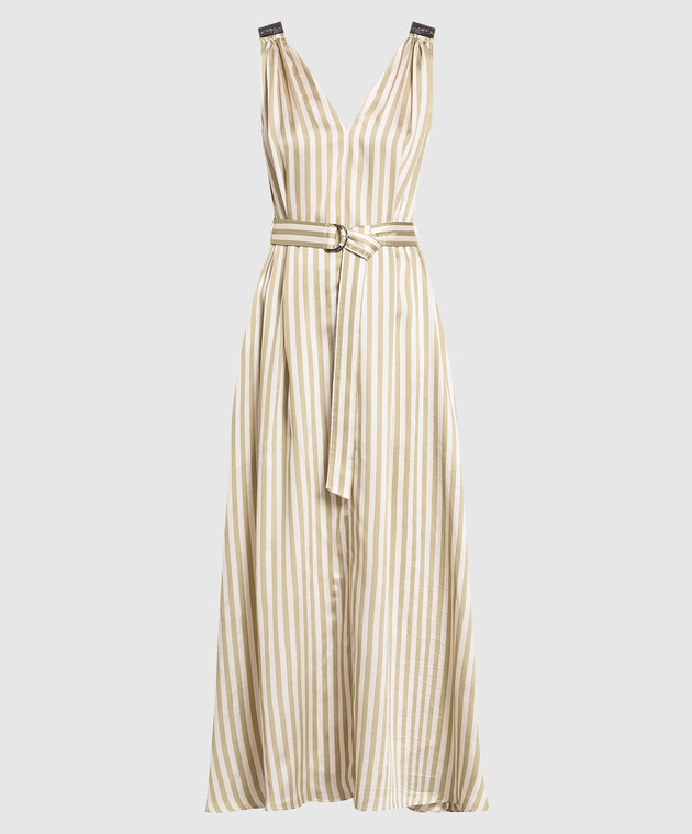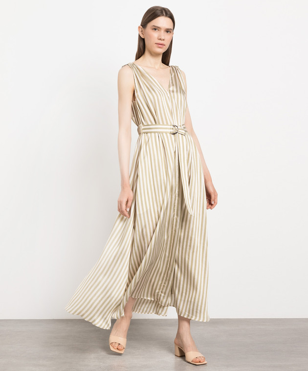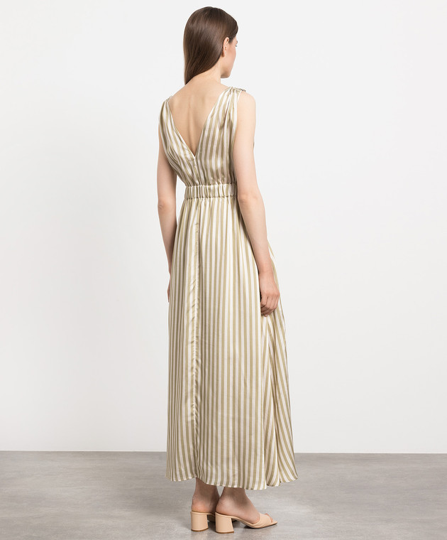 • Декор принт смужка, ланцюжок моніль з еколатуні, розрізи в бокових швах, драпірування