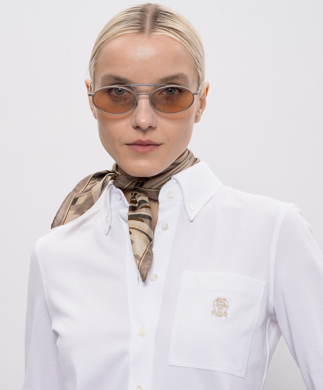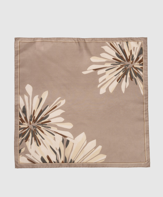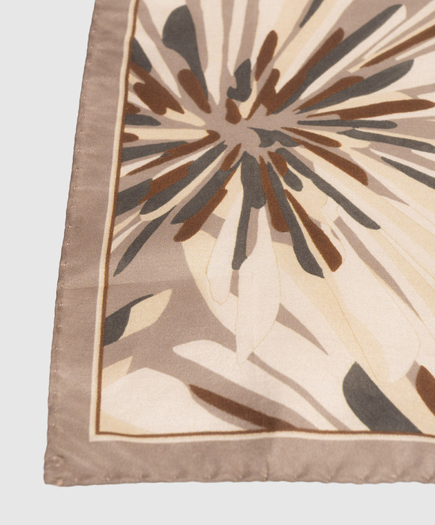 Хустка кольору хакі із шовку в квітковий принт