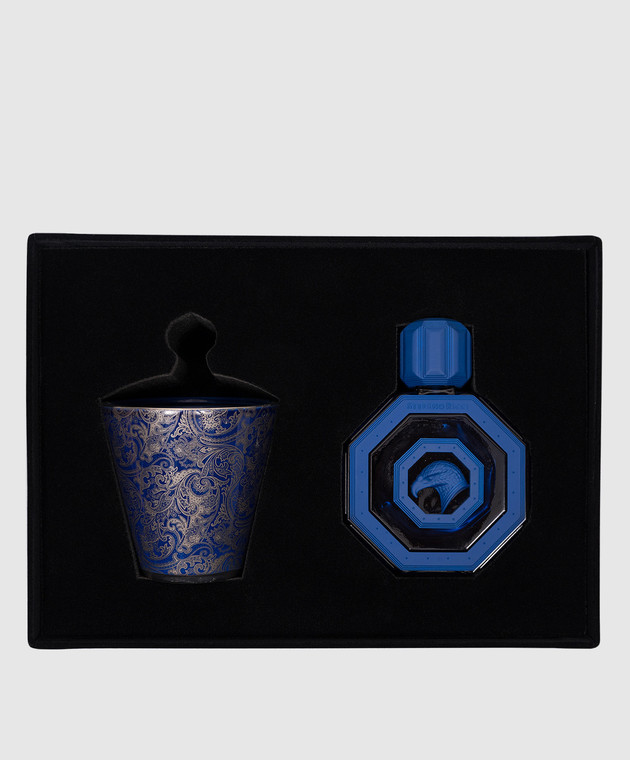 • Декор: фактурний логотип із зображенням голови орла, гравіювання логотипа / порцеляновий підсвічник з візерунком Blue Fine Paisley