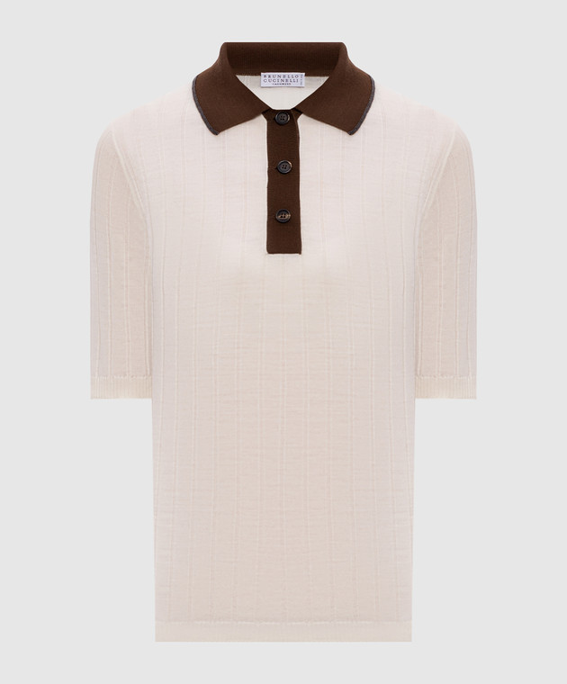 Поло кольору айворі з вовни та кашеміру в рубчик