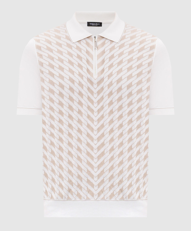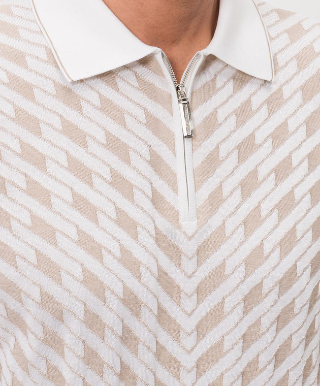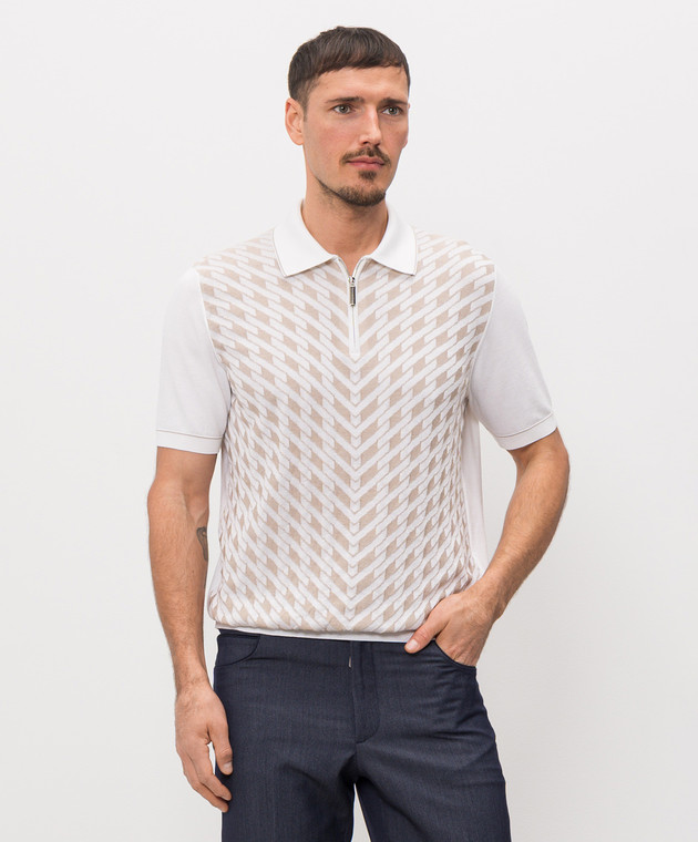 Поло кольору айворі з шовком в геометричний візерунок