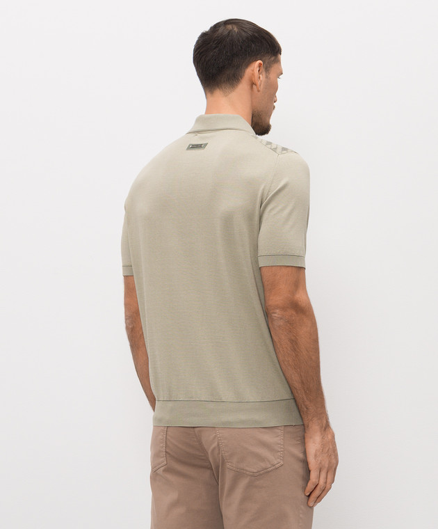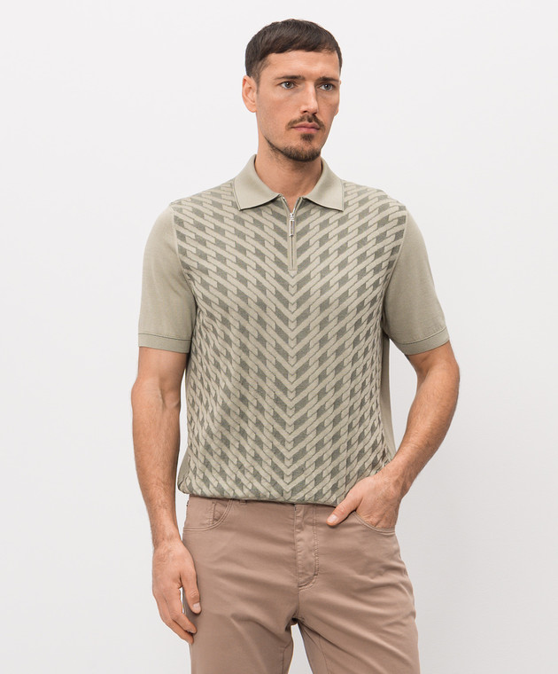Поло кольору хакі з шовком в геометричний візерунок