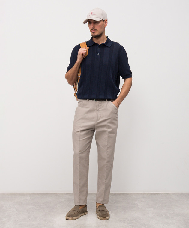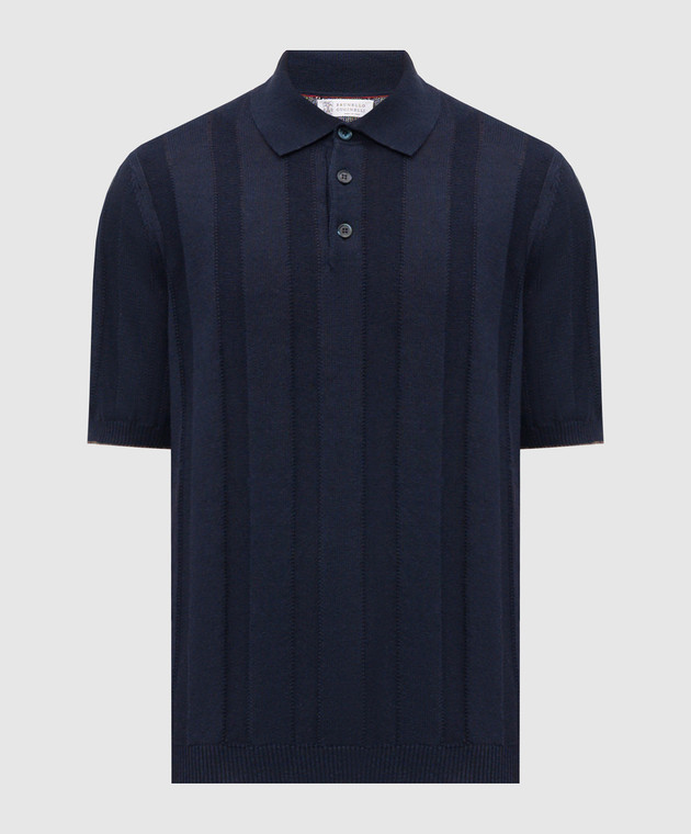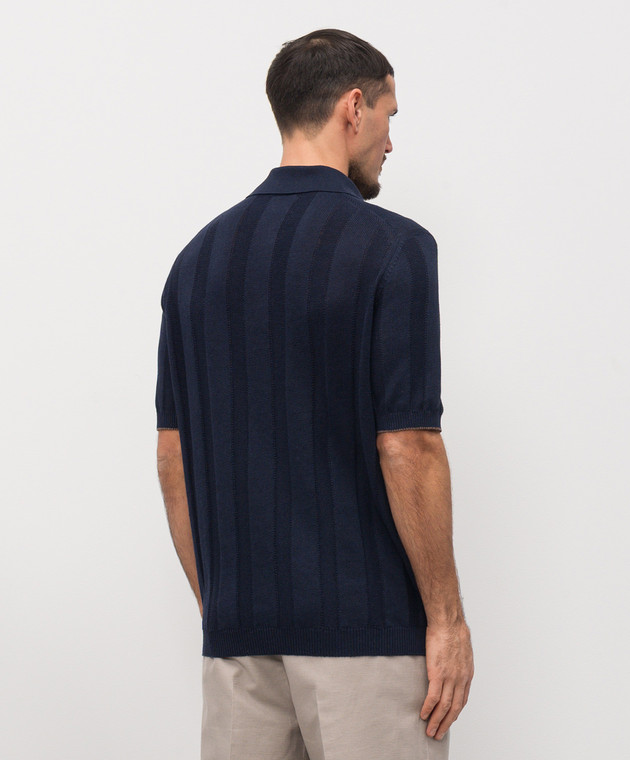 Поло синього кольору з льоном в тканий візерунок