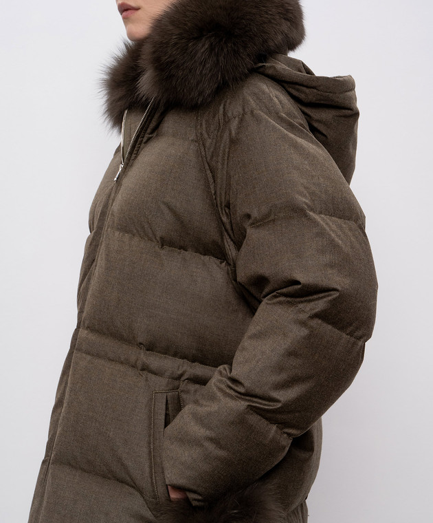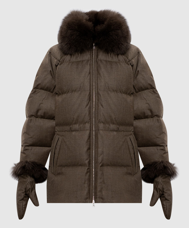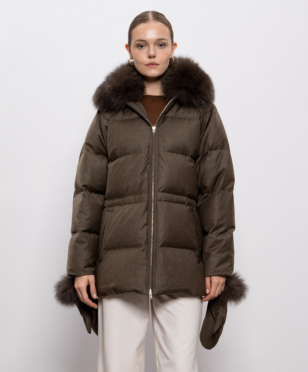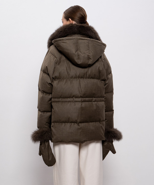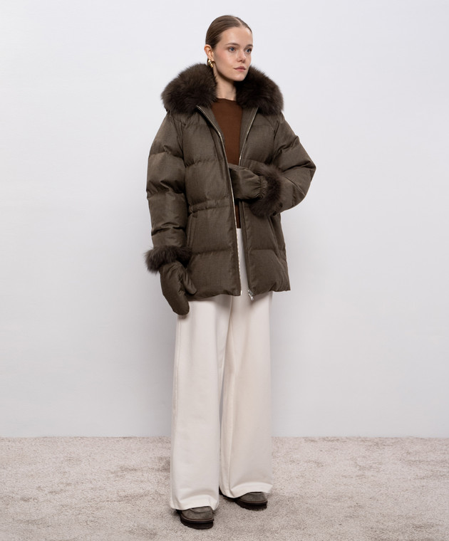 Пуховик з вовни та шовку кольору хакі з хутром лисиці