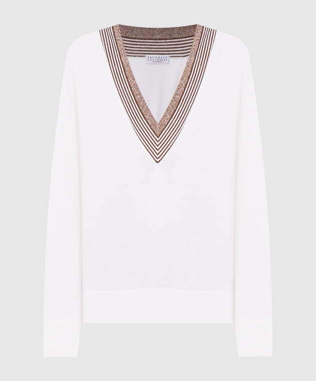 Пуловер кольору айворі з кашеміру та шовку з люрексом