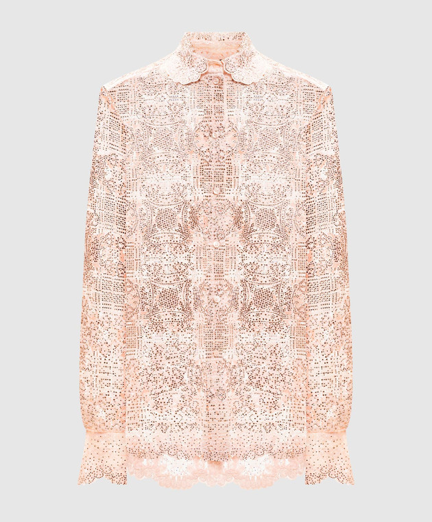 Рожева блуза з мережива в кристали