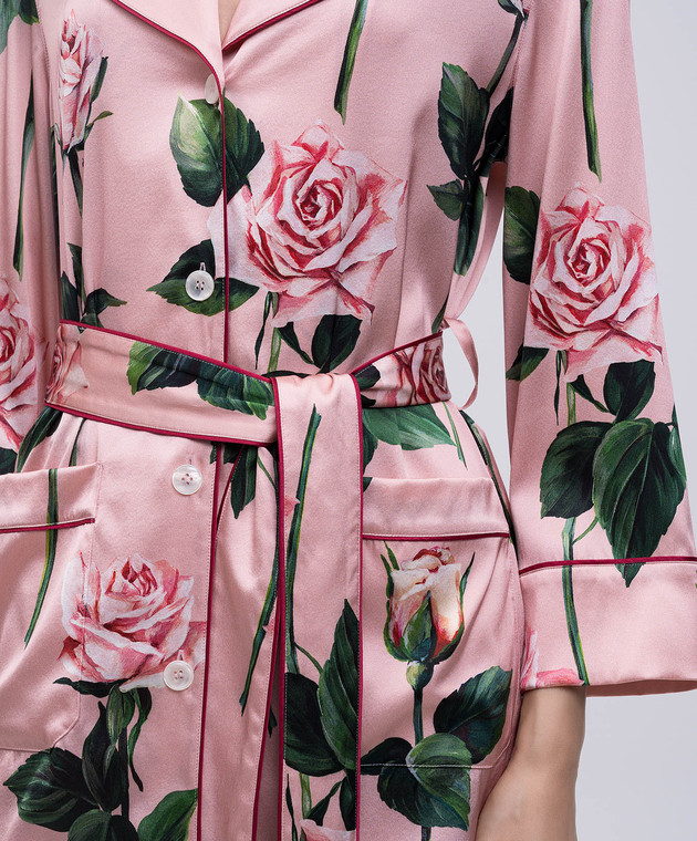 • Декор квітковий принт, принт логотипа, контрастне окантування, розрізи в бокових швах, блискуча текстура